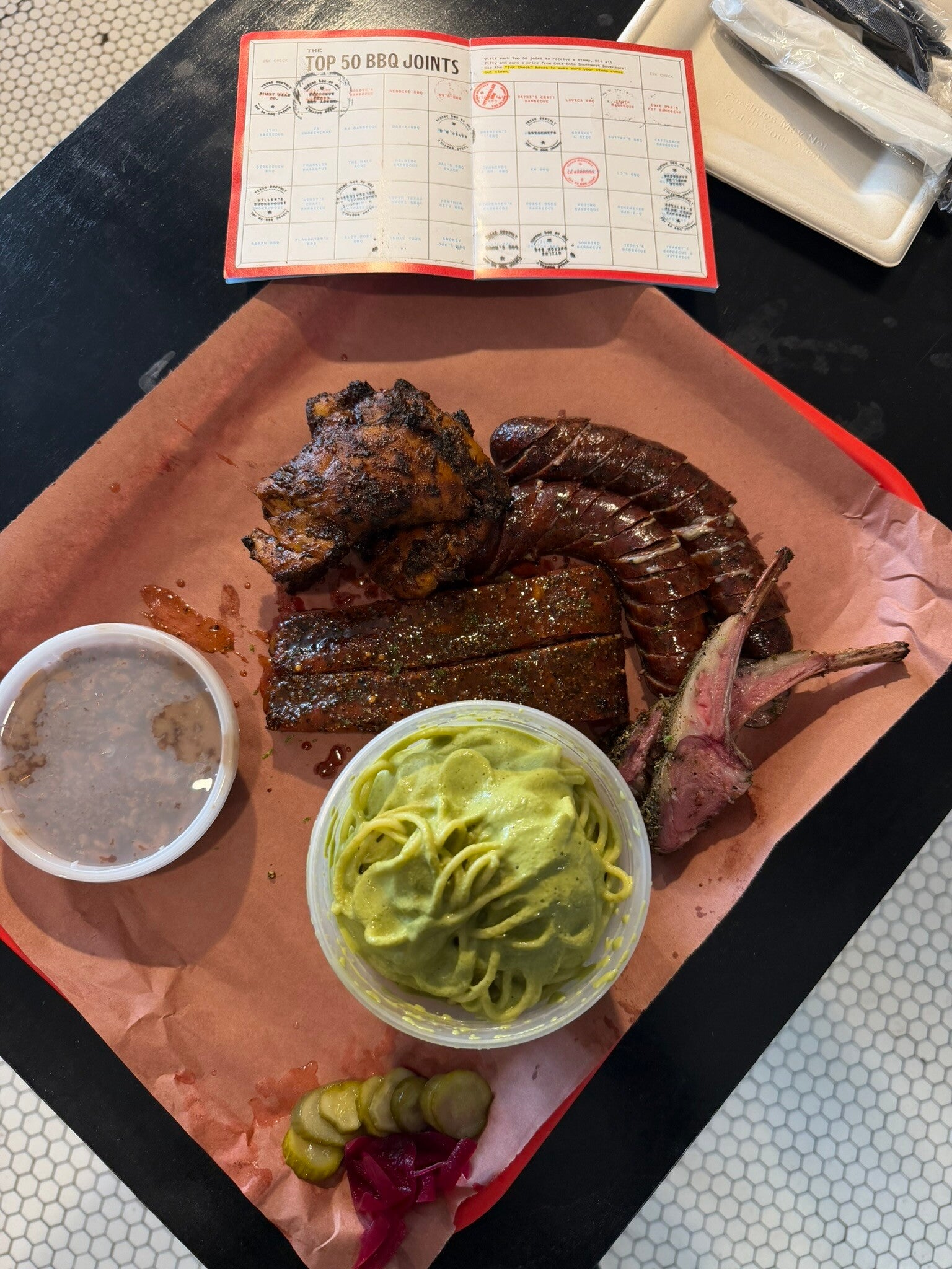 The food is always good and always bring a cooler to bring home extras! We ordered the ribs, sausage, chicken, lamb chops, green spaghet and Mexican chocolate pudding!
