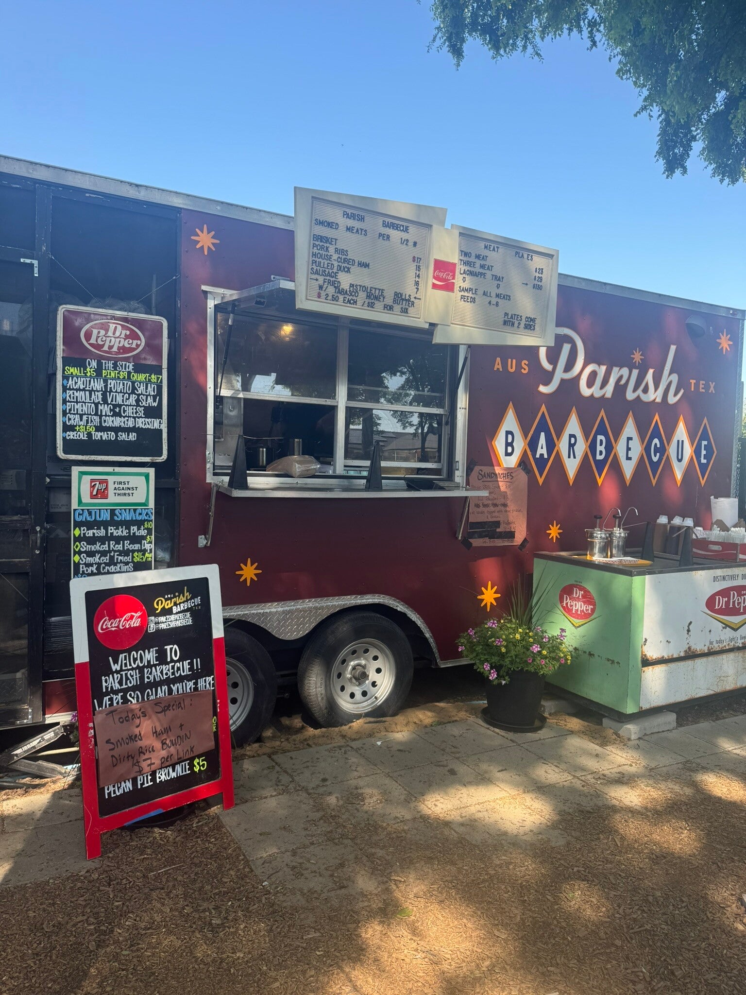 We checked out this new Cajun food truck @parishbarbecue with friends who grew up in Louisianna and gave it their seal of approval! The fried pisotelette roll with a Tabasco honey butter was a first for us and understand there's many variations to it. Reminded me of a donut that has melted spicy butter on the top, yum! The sides were pretty special too, like the pimento mac and cheese and potato salad. The BBQ is done perfectly pork ribs, sausage and pulled duck! Need to save room next time for the @batchatx for the kolaches for coffee and dessert, we took some home. Such a great combination of comfortable atmosphere, SHADE, lots of picnic tables and tasty food choices make for a perfect Austin eating experience.