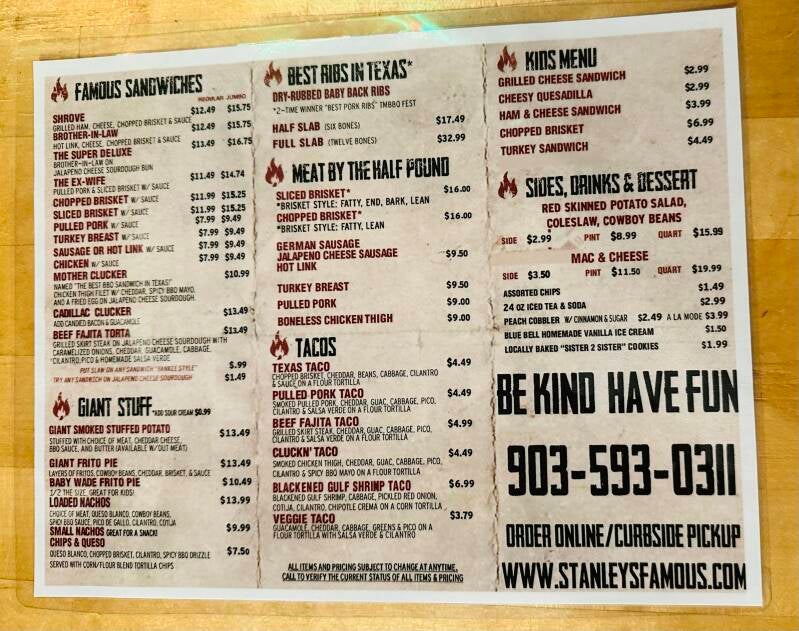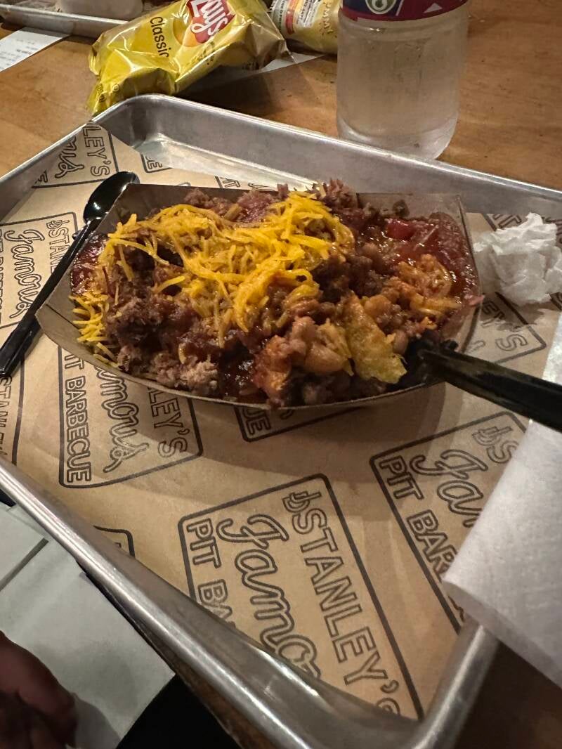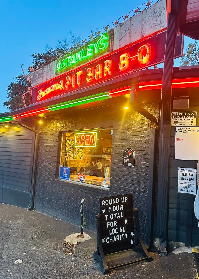Stanley's Famous Pit BBQ—Nationwide Shipping (stanleysfamous.com) is a fun place to visit with a group. Anticipation of the good BBQ starts from the great smoke smell when walking to wait in line, so you have enough time to decide what to order to walking through the huge restaurant space with long tables. We went with our tennis team on a Saturday night and able to find a table to all of us. Fun atmosphere and good food.