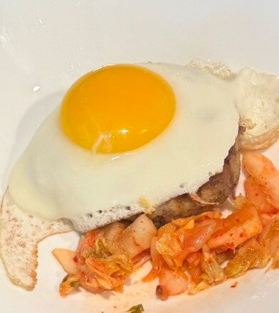- Fry an egg in the same pan, add kimchi for a hearty breakfast