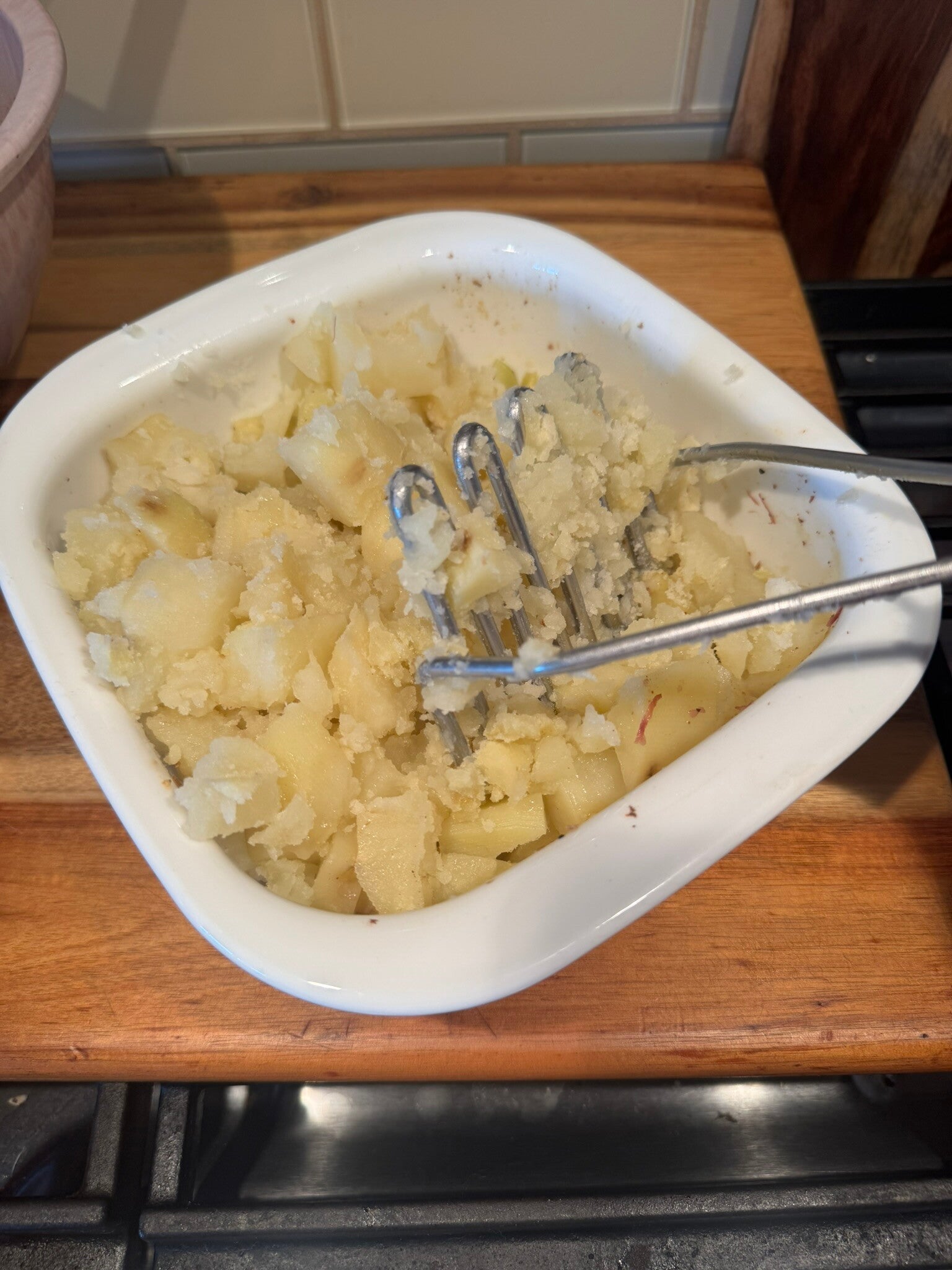 - Microwave peeled, cubed potatoes, about 10 minutes