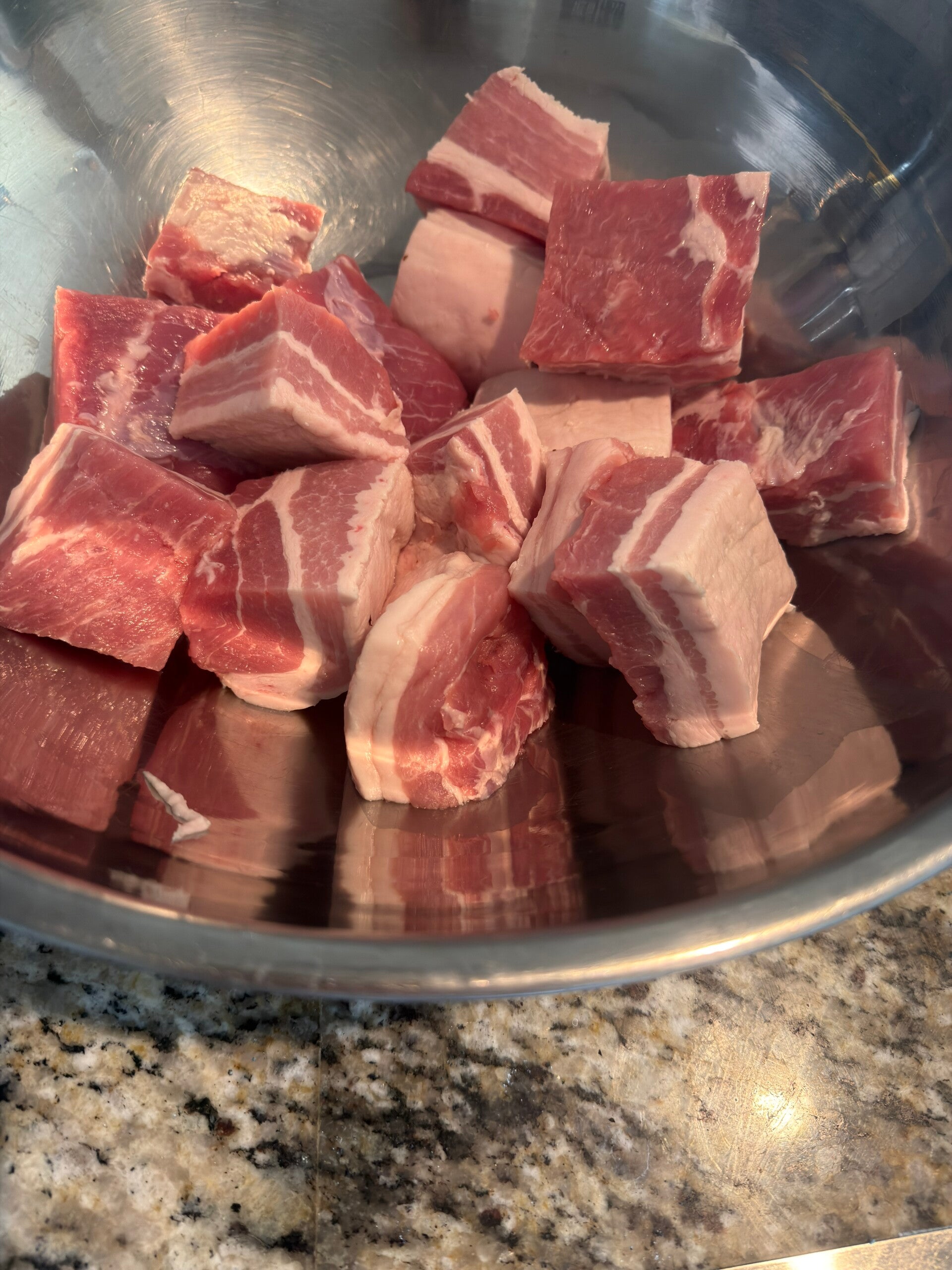 - Cut the belly into 2" cubes