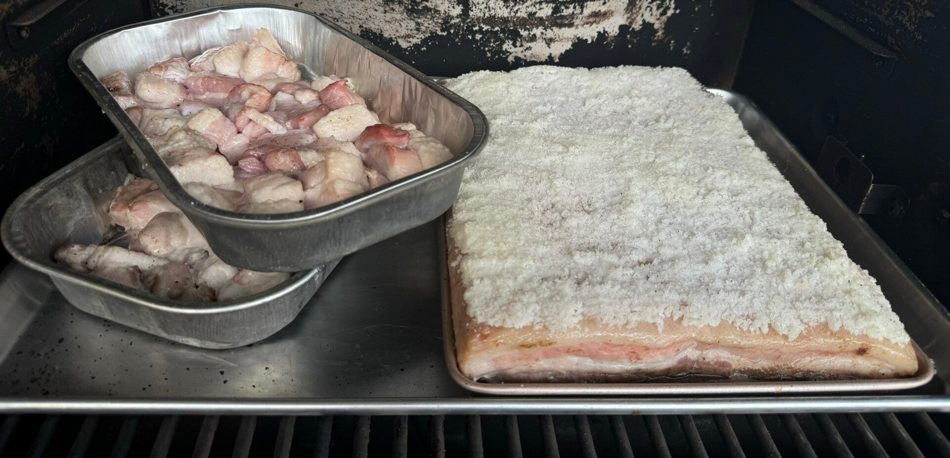 - Cut belly in to 1-2" cubes
