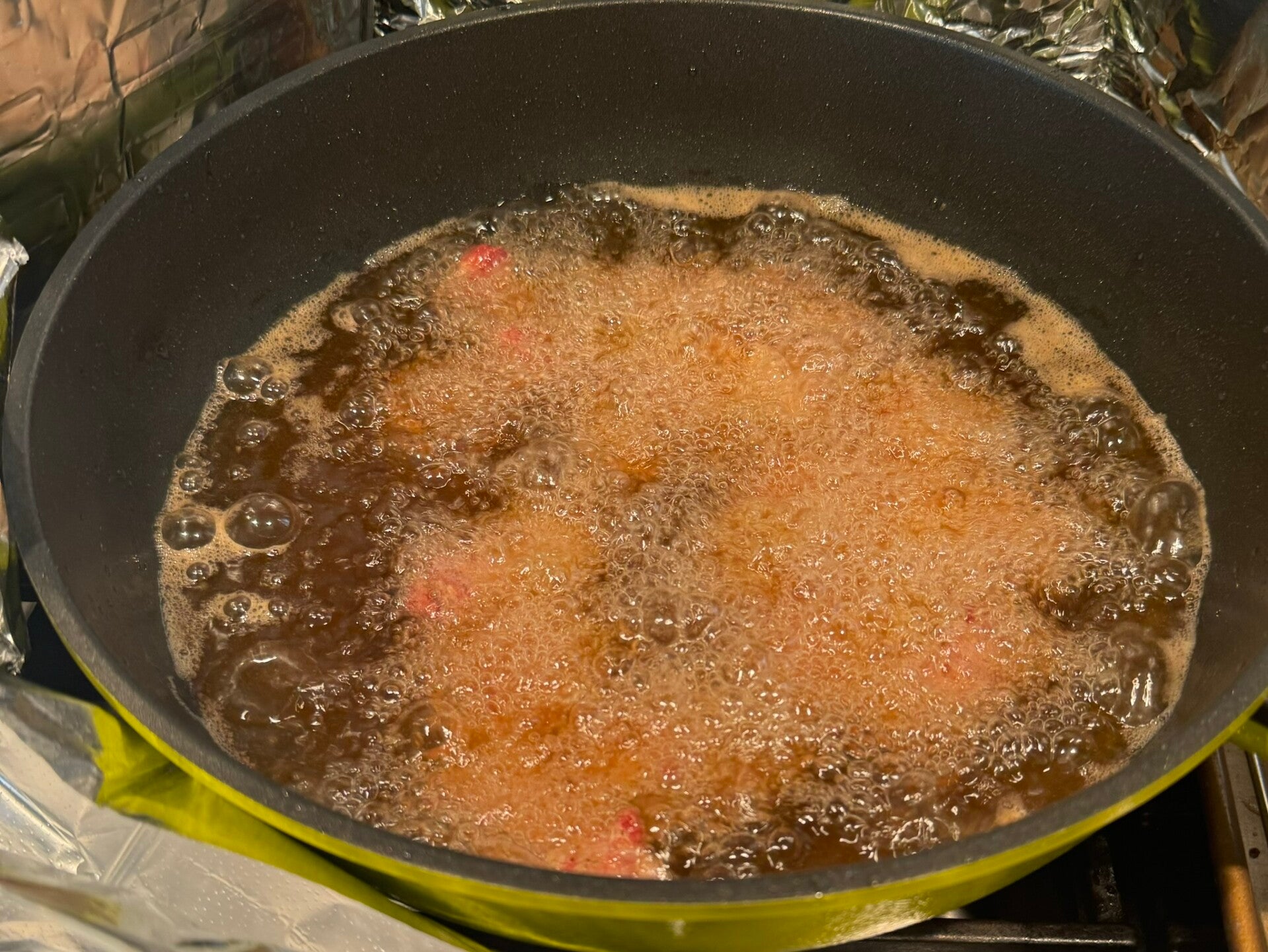 - Heat frying oil to 350F to pan, enough to cover the meat
