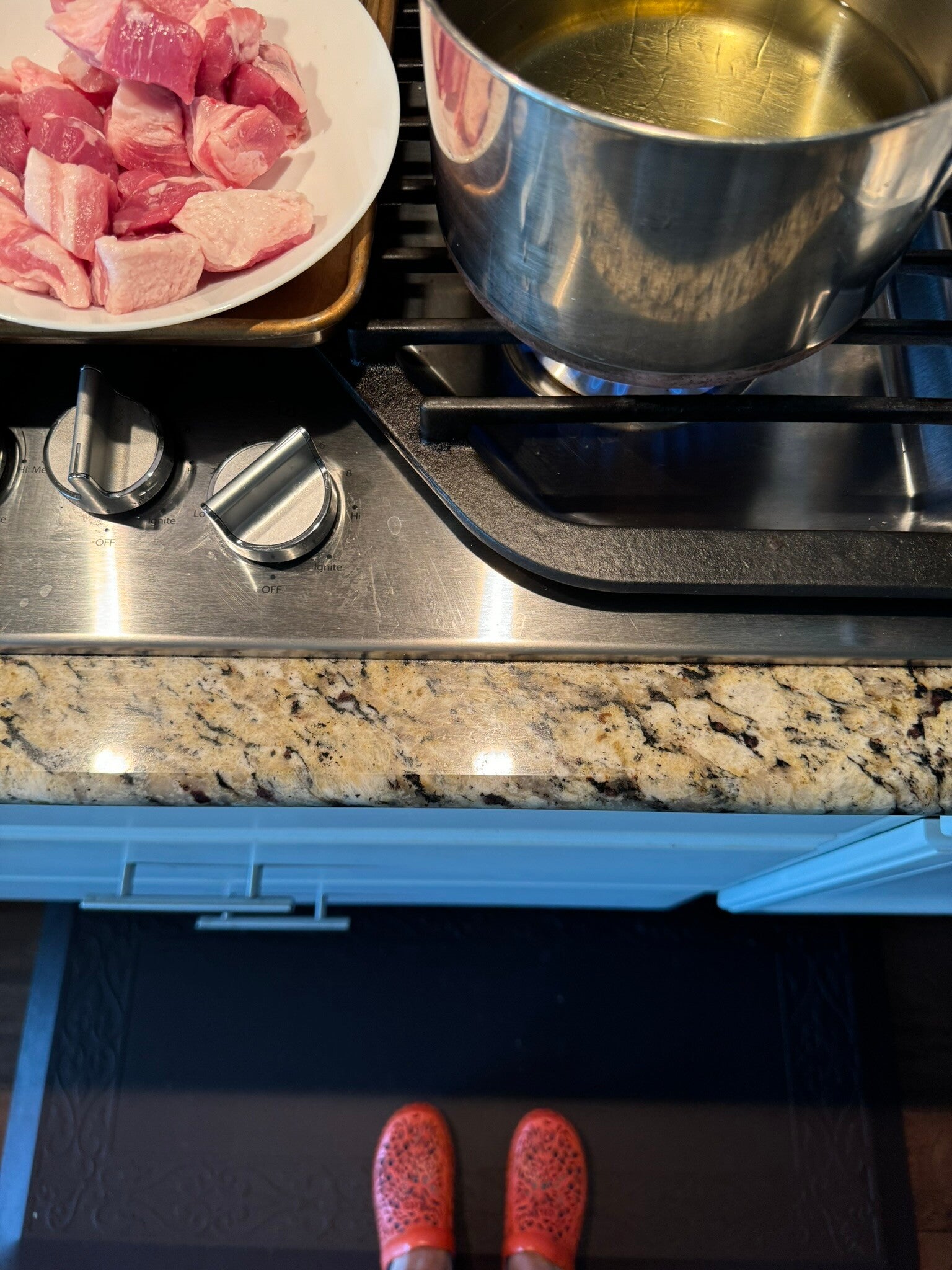 This pork cracklin recipe is inspired after a trip to the Best Stop Cajun Market in Katy where they deep fried pork belly! I smoked it THEN deep fried it to get that extra smoky flavor. I like having a full smoker and will fill in the space with what's on hand. The beauty of this recipe is the flexibility to make as much or little as you want. I have to use platform kitchen shoes to deep fry since I am height challenged and makes it ergonomically safer :-).