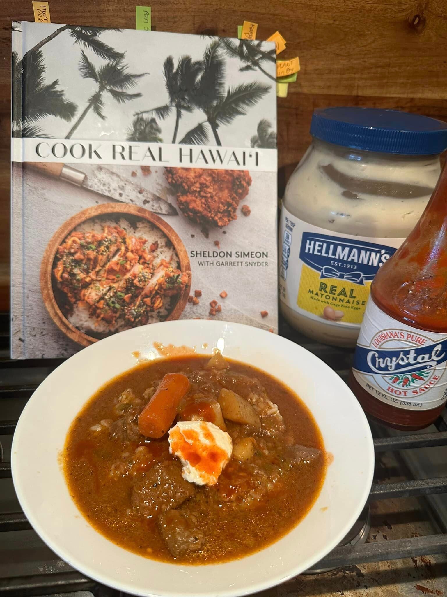 This stew is comfort food that only gets better for leftovers, especially when I have lots of smoked brisket that adds extra flavor and tenderness. The mayo and hot sauce isn't needed but adds a nice creaminess, I didn't know I needed.