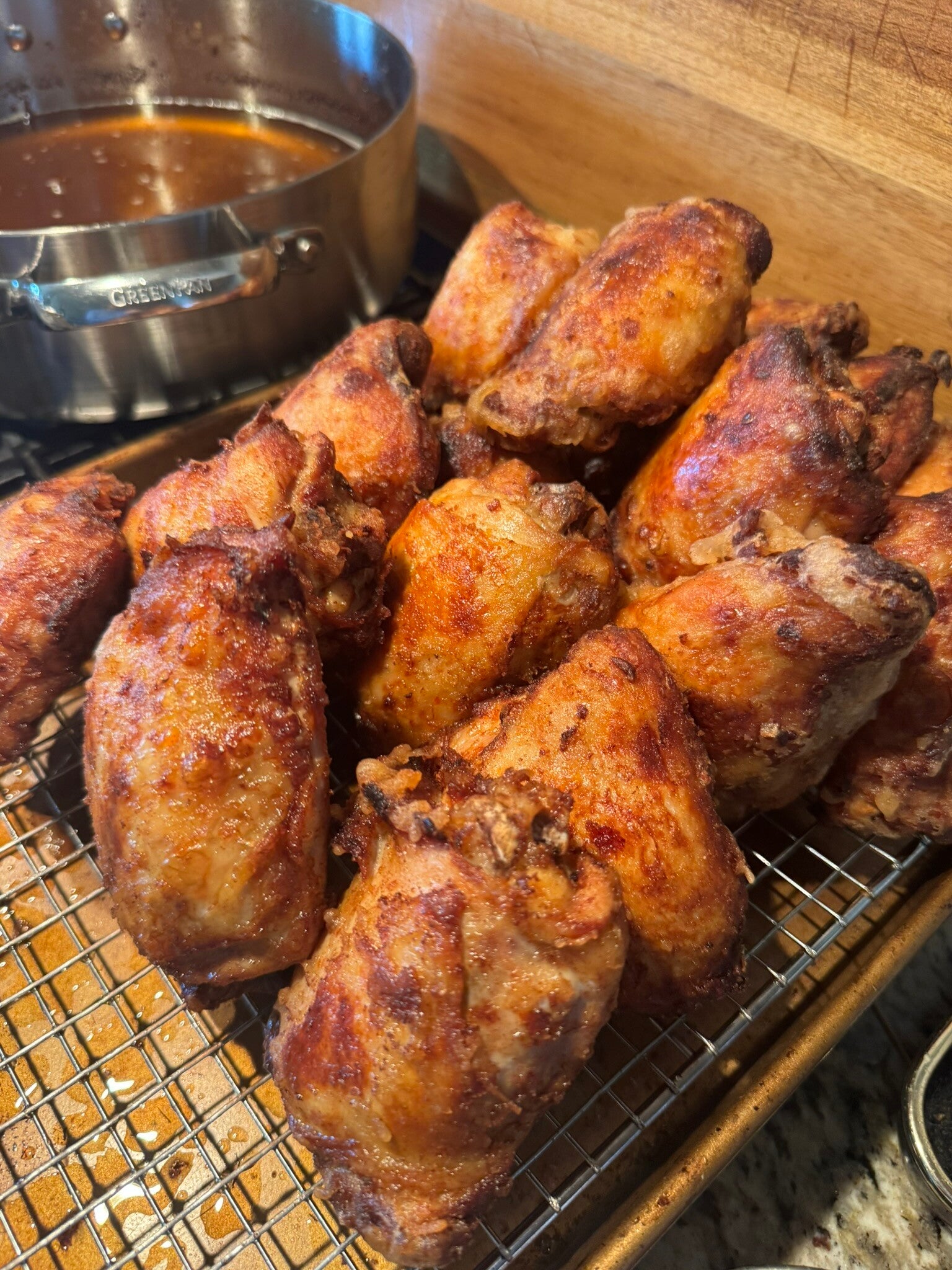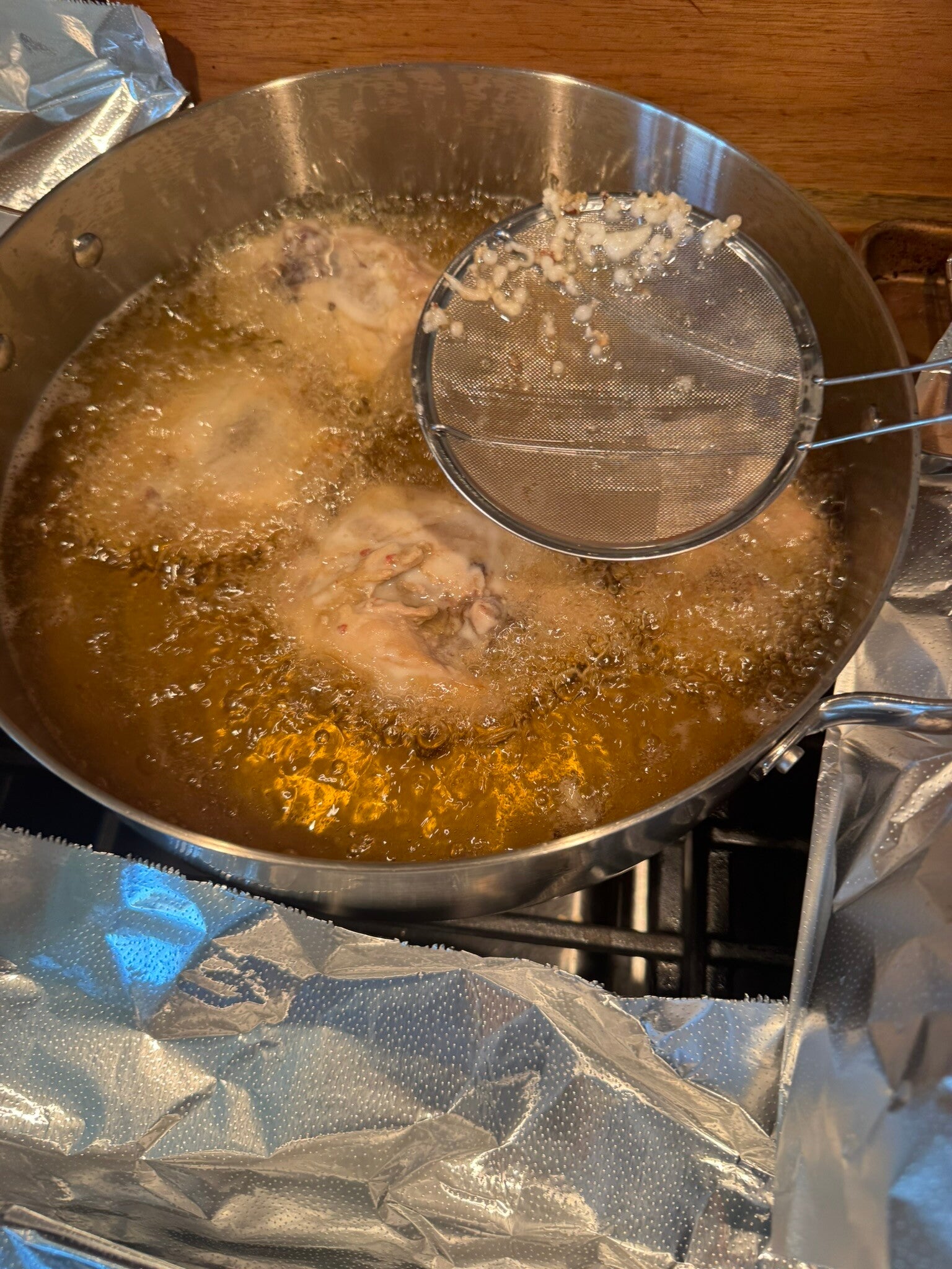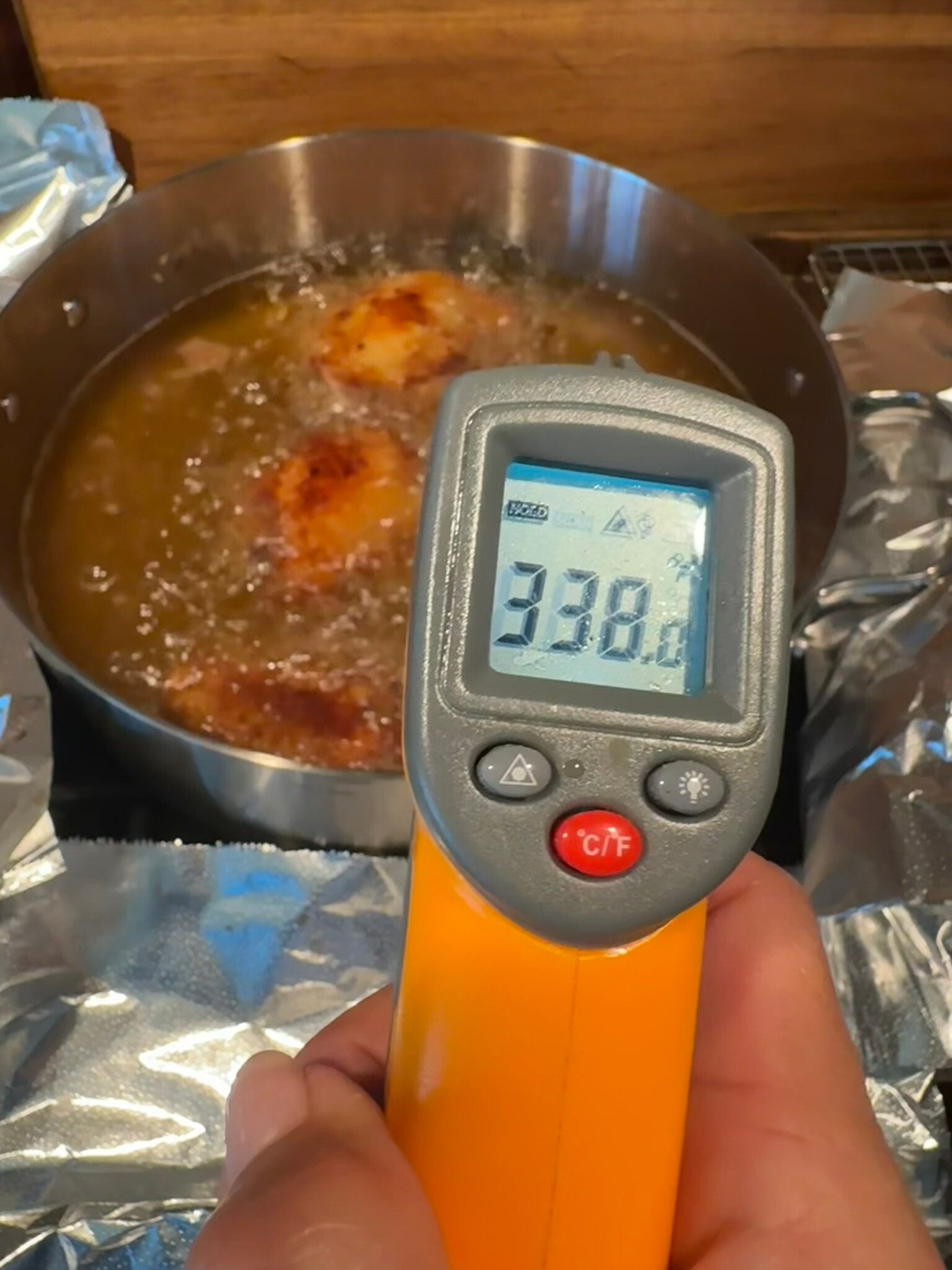 - Deep fry between 340-350F about 5 minutes and drain on wire rack.